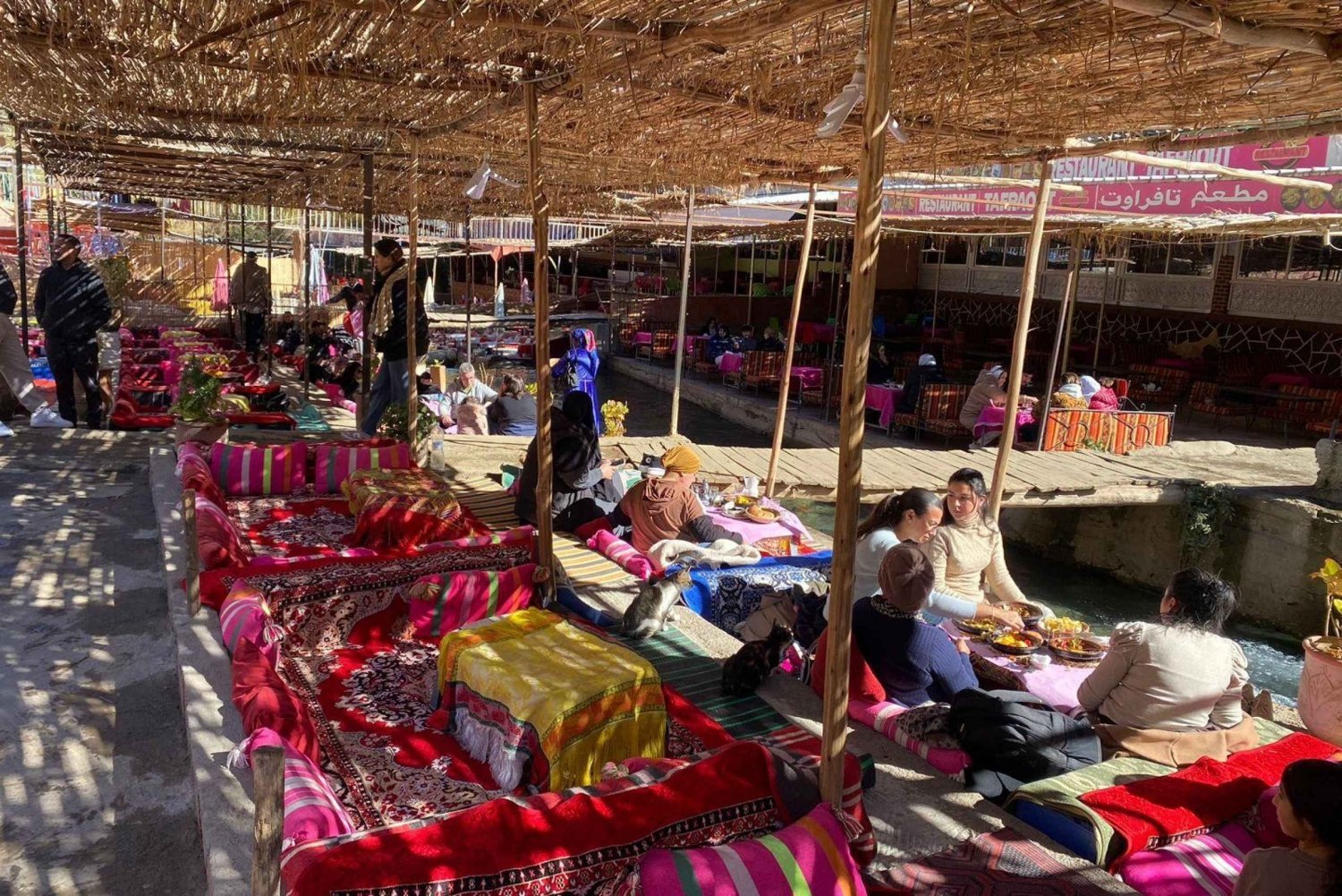 Explorez la magnifique vallée de l’Ourika, située dans le Haut Atlas, célèbre pour ses paysages verdoyants, rivières et villages berbères traditionnels. Cette excursion d’une journée vous permettra de découvrir les cascades de l’Ourika, l’artisanat local, ainsi que la vie rurale berbère. Adaptée aux familles et aux amateurs de nature, cette excursion offre un parfait mélange de culture, aventure et détente.