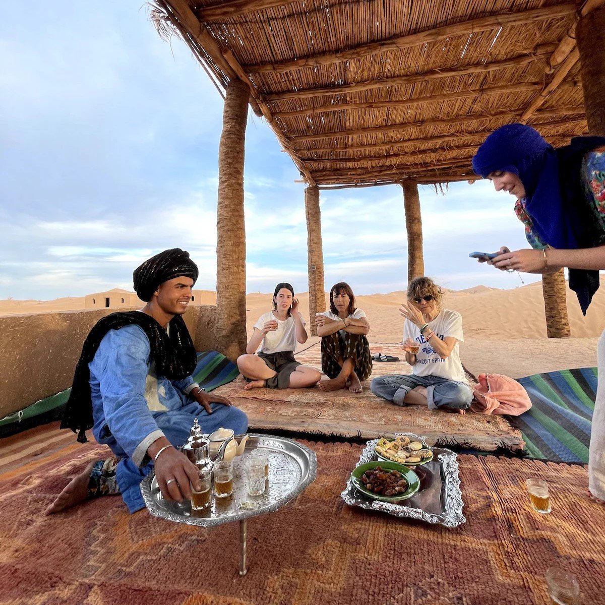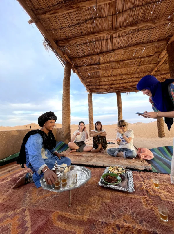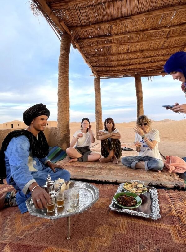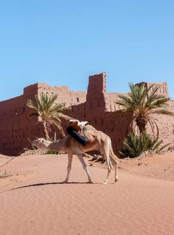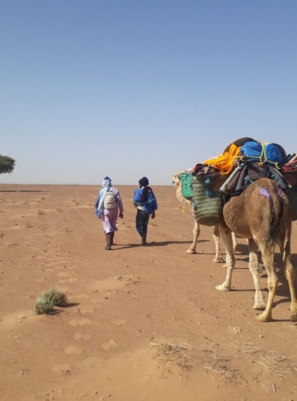 Partez pour une aventure unique dans l’un des derniers espaces sahariens accessibles depuis la vallée du Drâa : les dunes de Bounou. Vous traverserez une palmeraie traditionnelle, suivie par des paysages de dunes blanches et de regs désertiques, symbole de l’immensité du Sahara marocain. Le village de Bounou, niché à l’orée des dunes, offre un cadre authentique : kasbah en terre, culture nomade, accueil berbère.