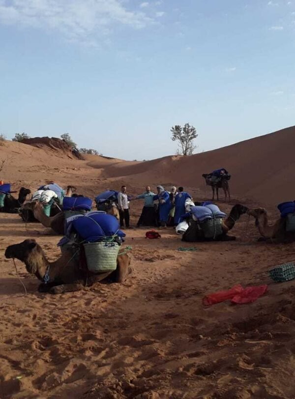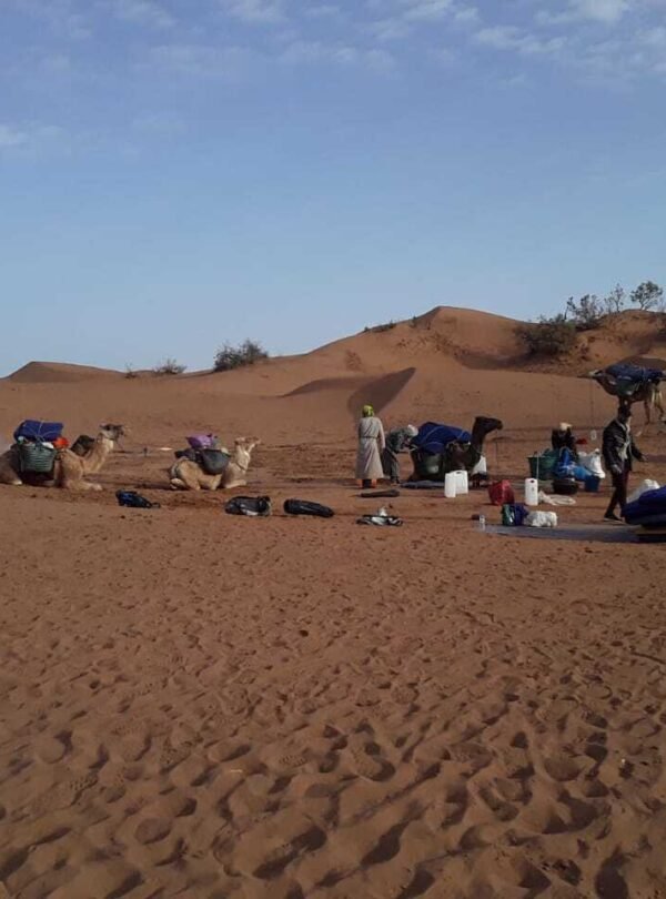 Vivez une excursion unique à travers l’oasis verdoyante de M’Hamid el Ghizlane, où s’étend une vaste palmeraie au cœur de la vallée du Drâa, à la frontière du désert saharien. Traversez les allées de palmiers-dattiers, découvrez les techniques d’irrigation traditionnelles et ressentez l’atmosphère d’un lieu où la nature et l’homme cohabitent en harmonie malgré l’aridité. En fin de journée, profitez du paysage changeant qui s’étend vers les dunes, offrant un spectacle de lumière digne des cartes postales.