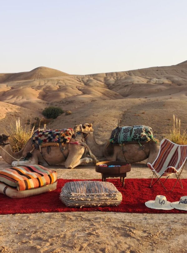Vivez une soirée unique dans le désert d’Agafay, avec ambiance traditionnelle marocaine. Profitez du coucher de soleil sur les paysages désertiques, d’une balade à dos de dromadaire, d’un dîner sous tente berbère, accompagné de spectacles folkloriques et musique locale. Cette soirée est idéale pour couples, familles ou groupes d’amis à la recherche d’une expérience authentique et mémorable.